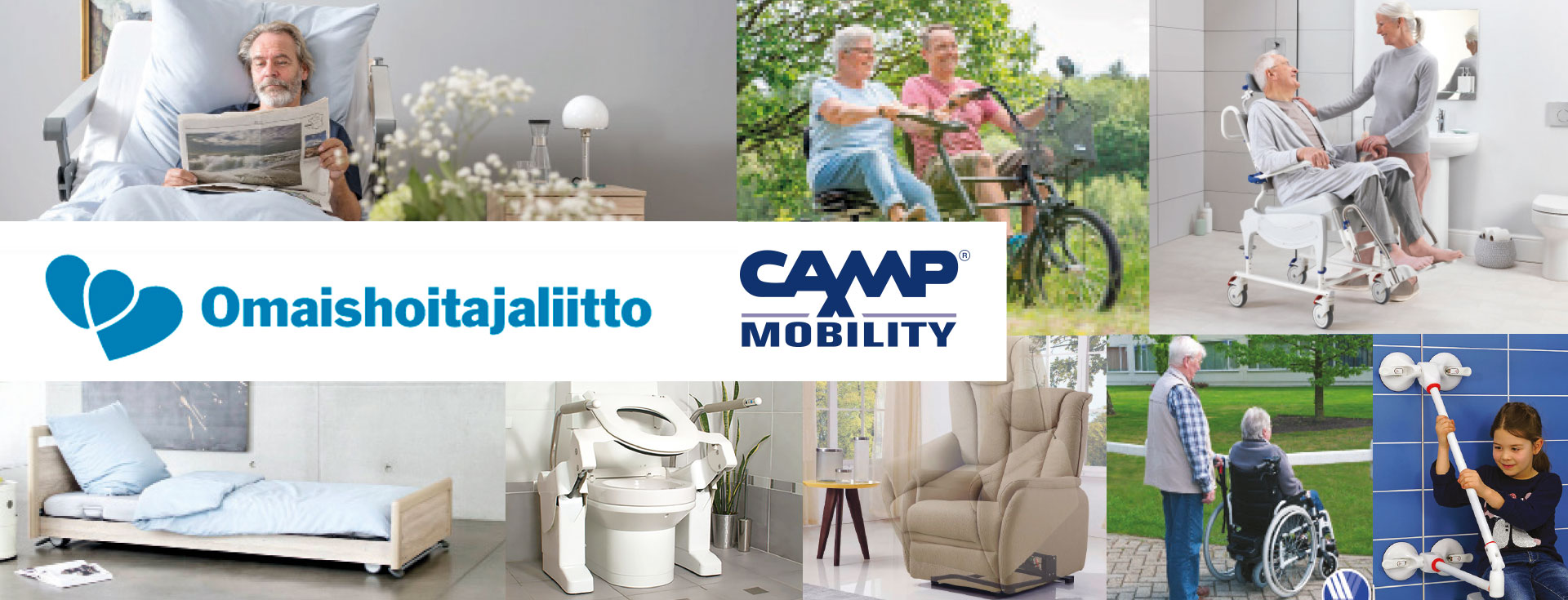 Osana yhteistyökumppanuutta Camp Mobility tarjoaa Omaishoitajaliiton jäsenille tai heidän omaisilleen käyttöön tulevista apuvälineistä - 5%:n alennuksen kaikista Camp Mobilityltä tehdyistä ostoista ja vuokrauksista. Alennus koskee kaikkia valikoimassamme olevia tuotteita ja rahoitustapoja kuten osamaksu, vuokraus, postiennakkolasku ym.