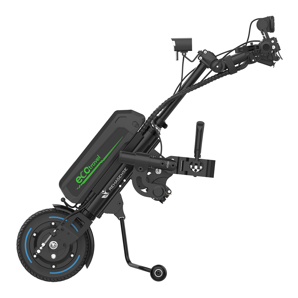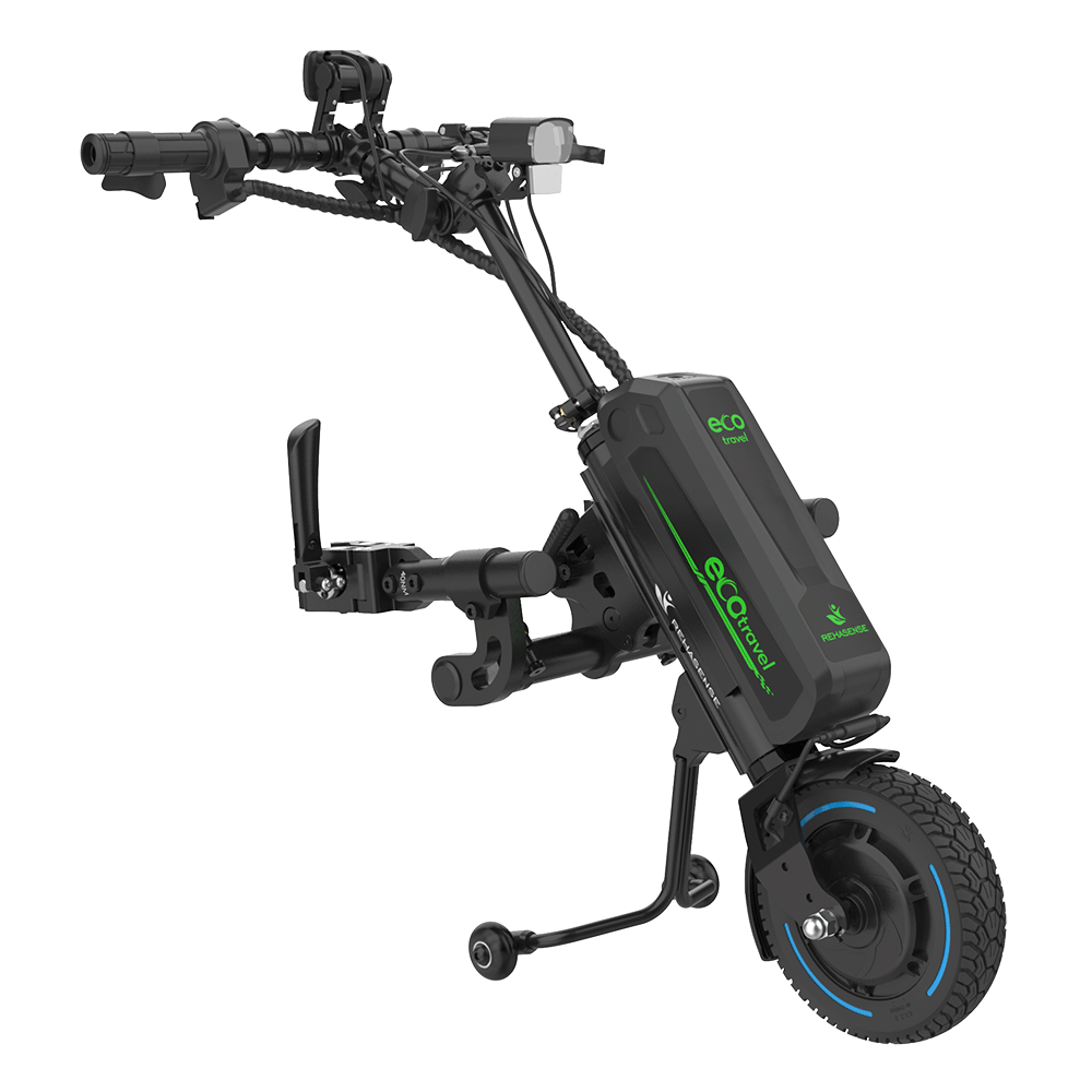 Kompakti Rehasense ECO Travel on ratkaisu tien päälle. Sähköinen ajokeula muuttaa manuaalipyörätuolin vaivattomasti tehokkaaksi, helposti
